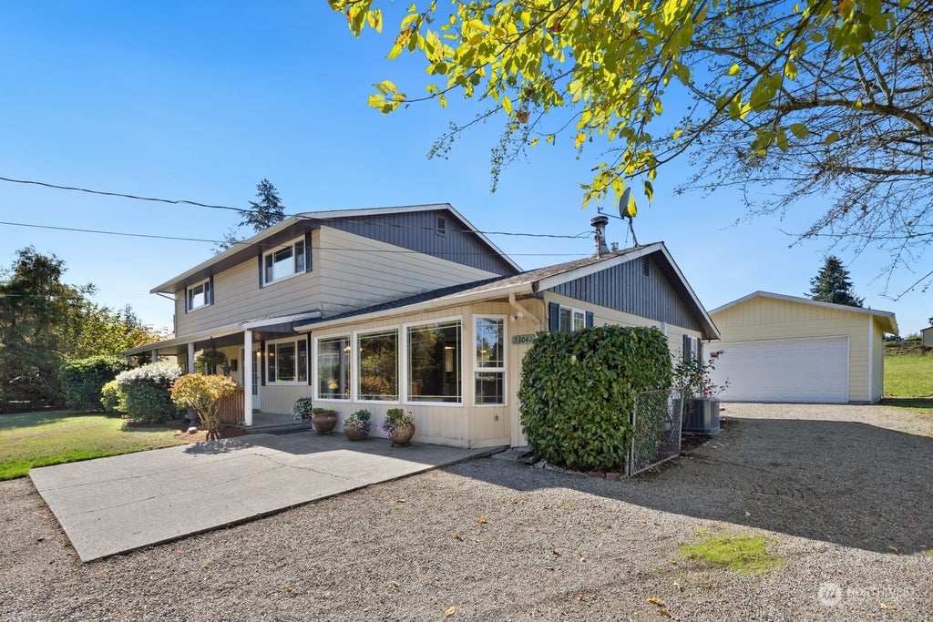 This nearly 3000 sq ft 2 story with 4 bedrooms and 2.5 baths sits on a private 1/4 acre lot and has a detached 2 car garage. Entertaining size family room that is open to the kitchen. The main floor also has a living room that is complete with a brick fireplace. The spacious kitchen has granite countertops, an eating bar, nook and a bay window. The upper floor offers 4 bedrooms all with hardwood floors throughout and there a 5 piece bath. The large patio overlooks the private backyard and pasture. Plenty of RV Parking and a great close in location for easy access to freeway and shopping. Newer vinyl windows and a heat pump for efficiency and cooling comfort!