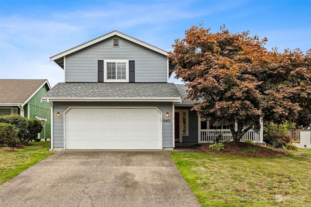 This well-maintained home on a roomy corner lot offers a welcoming and bright atmosphere, enhanced by vaulted ceilings and plenty of natural light. The kitchen has been thoughtfully remodeled, with Quartzite counters, new LG kitchen appliances, and updated lighting fixtures. Enjoy the gas fireplace with new stonework, new LVP downstairs, and custom blinds on the main floor. Upstairs features the primary bedroom with an updated en-suite bath, two guest bedrooms, and an updated full bathroom with a tile shower. French doors open to a covered patio in the spacious backyard. Functional 2-car garage & storage shed. Conveniently situated between two large community parks, close to shopping, dining, & an easy drive to JBLM.