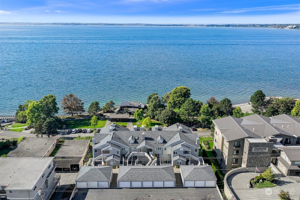 Unobstructed Bay, Island and Mountain views from this South Hill luxury waterside condo overlooking premier Boulevard Park. Enjoy the ever-changing scenery - sailboats and sunsets from your generous deck. Spacious lower patio with direct access to a grassy lawn. Updated finishes with Corian counters, Travertine tile accents, crown molding + Oak site finished hardwood floors. Open concept design. Entertainer's kitchen. Living room with a gas fireplace. Primary ensuite with spa-inspired finishes and view deck. Laundry room with storage. 2nd BR on main. Lower level: family room with wet bar, workshop space with sink and 3rd BR. Private garage + uncovered parking space. Easy walk or bike ride to historic Fairhaven + gorgeous waterfront trails.