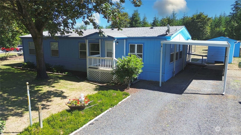 Exceptional home featuring an open layout with brand new carpet and fresh paint throughout! This well-cared-for 3 bedroom, 2 bathroom home includes a spacious primary suite for added privacy & comfort. Large living and dining areas with plenty of room for everyone. Enjoy the attached sunroom, perfect for relaxing or entertaining. Outside, you’ll find a fenced-in raised garden space, two powered outbuildings ideal for storage or hobbies, and a convenient carport with ample parking. The home is heated and cooled with an energy-efficient heat pump, ensuring year-round comfort. This home offers everything you need for comfortable, modern living while sitting on one of the largest lots in the park. Don't miss out!