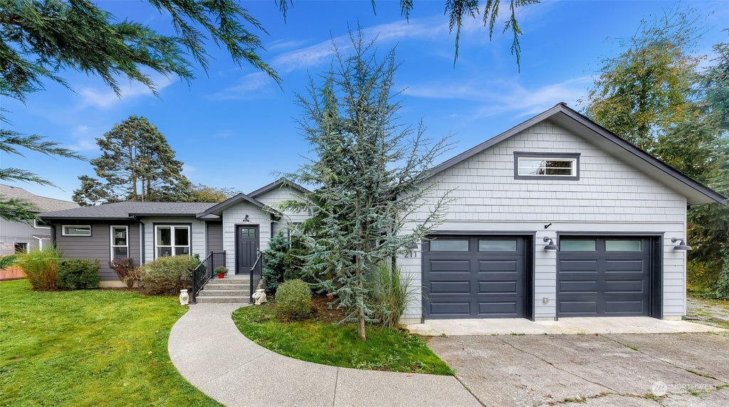Gorgeous single level country home close to town on a flat 1/3 acre lot. Open concept and thoughtful design with premium materials, including a chef’s kitchen with custom cabinetry, expansive concrete counters & island, black stainless steel appliance package, subway tile & an under mount sink. Primary bedroom with tile walk-in shower, second bedroom and bath on one end. Two more bedrooms and a guest bath on the opposite end captures this smart layout. Lots of natural light, birch flooring throughout (no carpet), sound-proof interior wall insulation, insulated & heated garage with workshop space and a brand new heat pump with AC! Awesome private back deck for entertaining, sport court and plenty of yard space for a shop & garden. No HOA.