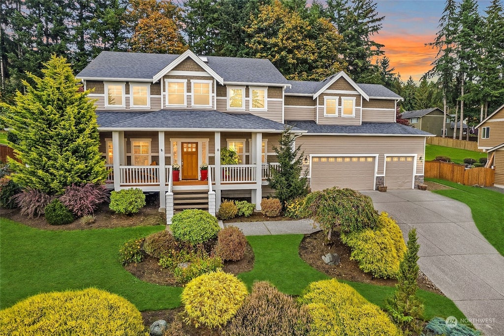Discover a charming style of living in desirable Roosevelt Ridge. Designed w/comfort & elegance, this home features beautiful wainscoting, vaulted ceiling, hardwood floors, A/C & open concept family room w/classic stone FP. The gourmet kitchen W/Quartz countertops, SS appliances, a center island & plenty of cabinetry make this the heart of the home. Upstairs, indulge in the luxurious primary suite W/5 piece en suite w/all the comforts. 3 additional bedrooms as well as a spacious bonus/media room is ideal for movie/game nights. Outside the gorgeous covered patio is a fantastic way to extend your living space all year long when you entertain. The location blends the best of country living while embracing the surrounding beauty of Snohomish.