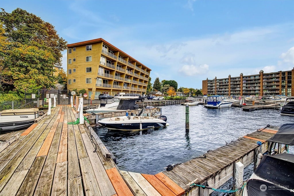 Top floor 2 bedroom 1 bath unit. Wake up every day to this amazing waterfront view or make it your weekend retreat! Keep the boat in your assigned very-hard-to-find 26' boat slip. Chinook Beach Park is next door, and the public boat launch is less than a half mile away. Head out on the water to Coulon Park, to Seattle's favorite waterside restaurants, or for dinner and socializing at Anderson Bay near Seward Park. Or rent out the unit and use the dock slip for your personal use. Unit has been updated with newer flooring, appliances, and millwork. In-unit washer/dryer and ample storage space. No rental cap. Located just minutes from downtown, Renton Landing, The Stonehouse Cafe and much more. Own your waterfront paradise now!