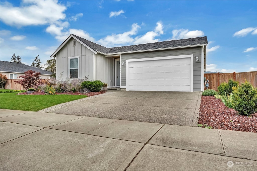 The spacious, single story home in Buckley you've been looking for has arrived! Step inside to this beautiful, bright home, nestled in the sought after community of Glacier Meadows, where a massive, open floor plan welcomes you. The main areas are complete with 9' ceilings, luxury trim, and vinyl flooring, complete with wide open sight lines to the large back yard, complete with a poured concrete patio, planter boxes, and complete privacy to enjoy.