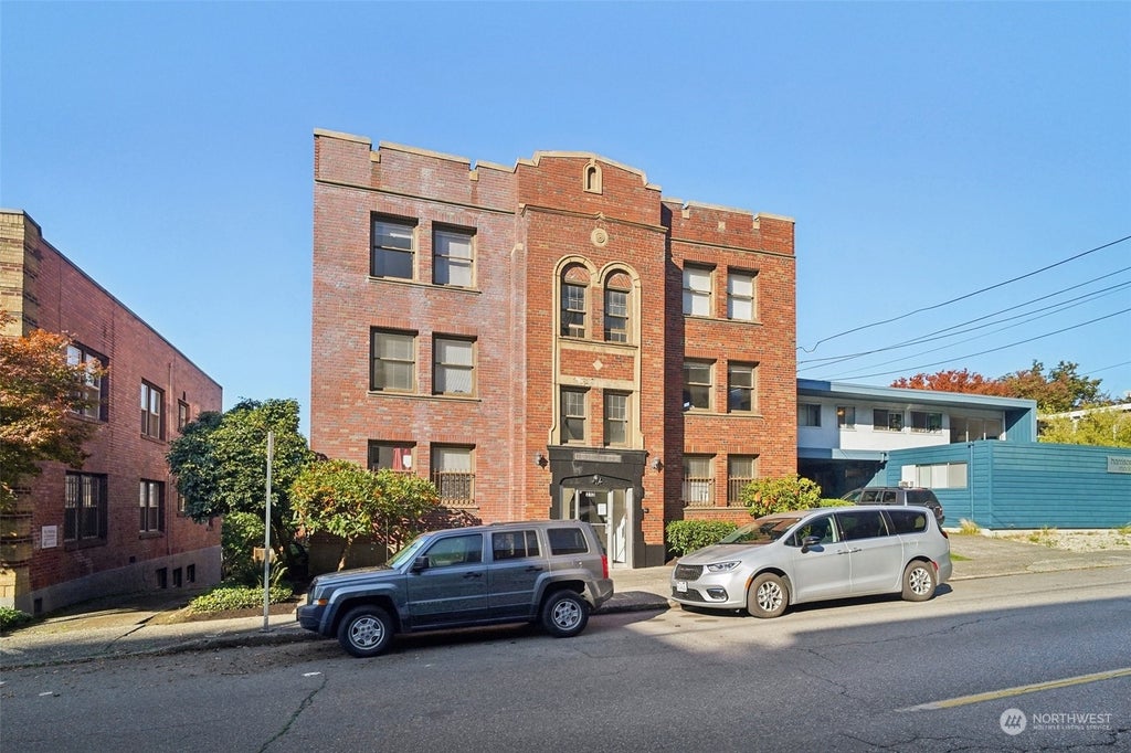 Stately, classic 1928 six unit apartment building, with stunning original brickwork, terra cotta details and parapet wall, in prime location on Capitol Hill. Rarely vacant, each unit is a large one bedroom with hardwood floors, living/dining rooms, and other vintage features. Six car carport off driveway on the west side of the building, common secure entry, and all units above grade. Walk Score of 98, just two blocks to Broadway and three to Link Light Rail. 5,994' lot with Mid Rise zoning (MR-M1). Full basement with large storage area and common laundry. Views of Seattle from this prime time location.