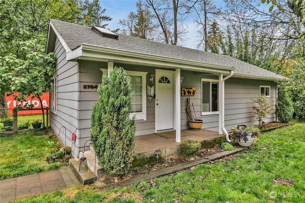 Welcome to this charming 2 bed/1 bath bungalow, beautifully updated with custom farmhouse finishes! The kitchen boasts elegant trim work that complements a striking wood beam separating the kitchen and living area. Convenience is key with a stackable washer/dryer relocated near the bedrooms. Enjoy privacy in the fenced front yard and a spacious, fenced backyard with a covered porch and skylight—perfect for entertaining. Green thumbs will love the garden space and fruit-bearing trees (Bing & Rainier cherries, plum, and Japanese pear). Enjoy ample storage with two shipping containers, RV/boat parking, and a detached 1-car garage. Located near all the amenities in Ravensdale, Black Diamond, and Enumclaw, it's close to everything!