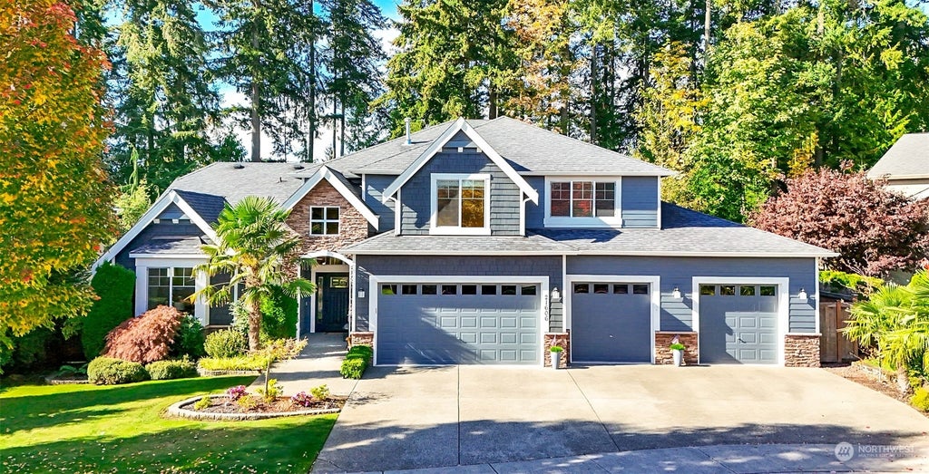 Welcome to the Westcastle neighborhood in the acclaimed Northshore School District! This luxurious home features a custom oversized 5-car garage & meticulously manicured landscaping. Step into the grand main living area w/ soaring vaulted ceilings & a cozy gas fireplace. The gourmet chef’s kitchen boasts top of the line SS appliances & a spacious walk-in pantry. The main floor primary suite is a true retreat w/ a spa-like 5-piece ensuite, dual walk-in closets & French doors opening to a serene backyard, complete w/ a covered patio & lush landscaping that backs to a greenbelt. Perfect for entertaining, this home offers 4 bedrooms, 2.75 baths & a large upper-level rec room. Just minutes from Canyon Park, Thrashers Corner & I-405.