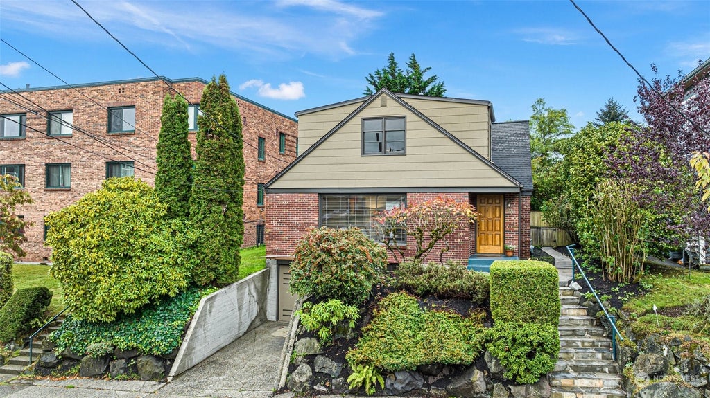 Location and charm in Green Lake. A 1940s Brick Tudor with some special features. 3 separate units permitted by the city. Live on the main floor. Rent the upstairs. Original charm intact. Built-ins, wide-plank oak flooring, high ceilings, wood fireplace, lots of closets and storage options. Main floor kitchen remodel in 2019. Level back yard is sunny and open. Custom steel exterior stairs lead to separate unit upstairs. Upper floor has charm too - huge, covered balcony, steel & glass cabinets in the retro kitchen, fresh paint and carpet for quiet footfalls. Newer appliances in all three units. Fresh paint in and out. Updated plumbing and electrical service. Green Lake is just around the corner. PCC is too.