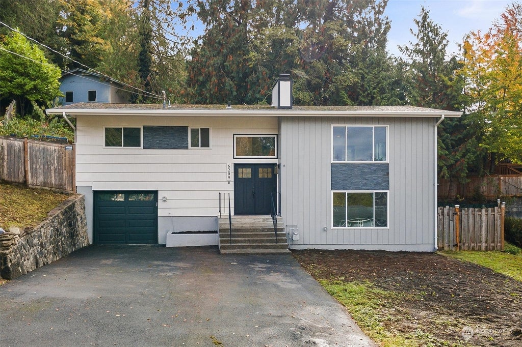 Welcome home to this beautifully updated split-level in the sought after Lake Kitsap community! Features new luxury vinyl plank flooring and fresh paint throughout. Modernized bathrooms. The upper level boasts an open-concept living space, true great room with cozy fireplace and a completely updated kitchen. The lower level includes bedroom and versatile bonus room. Step outside to enjoy mountain views from the refreshed deck or relax on the covered patio in your fully fenced backyard. Located in a quiet cul-de-sac near Kitsap Lake, this home offers easy access to PSNS, Bangor, Silverdale shopping, and Seattle ferries. Close proximity to parks, schools and the Kitsap Golf Club.
