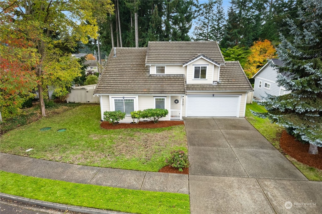 Inviting 3-bedroom, 2.5-bath home located in the highly desirable Meridian Campus neighborhood. This spacious 1,756 sq ft layout features soaring vaulted ceilings and a cozy double-sided gas fireplace that seamlessly connects the living and dining areas. The open kitchen offers ample storage and counter space, while the large wood deck off the dining room is perfect for entertaining or unwinding in the privacy of your fully fenced backyard. Close to shopping & dining with easy access to I-5 / JBLM.