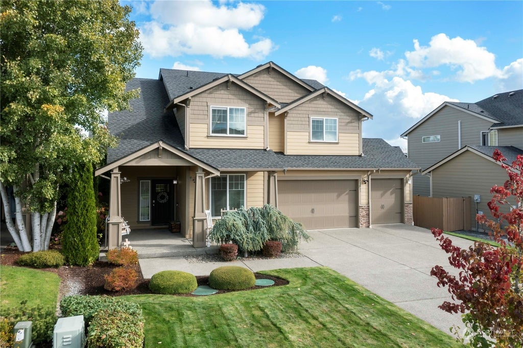 Welcome to your dream home! This pristine five-bedroom home exudes elegance & class. Grand entry w/vaulted ceilings & warm hand-scraped hardwood floors. Arched entries enhance the beauty throughout & lead to an open floor plan w/a gourmet kitchen featuring slab granite countertops, lg island, SS appl & walk-in pantry, family room offers a cozy gas fireplace & is graced w/lg windows showcasing the beautiful landscaping. Main floor includes a convenient bedroom, while upstairs, the expansive primary suite offers a luxurious private bath & spacious walk-in closet & bonus room. Situated on one of the largest lots in the neighborhood, enjoy outdoor living w/an oversized patio & a gazebo pergola-perfect for entertaining. This is a true gem!