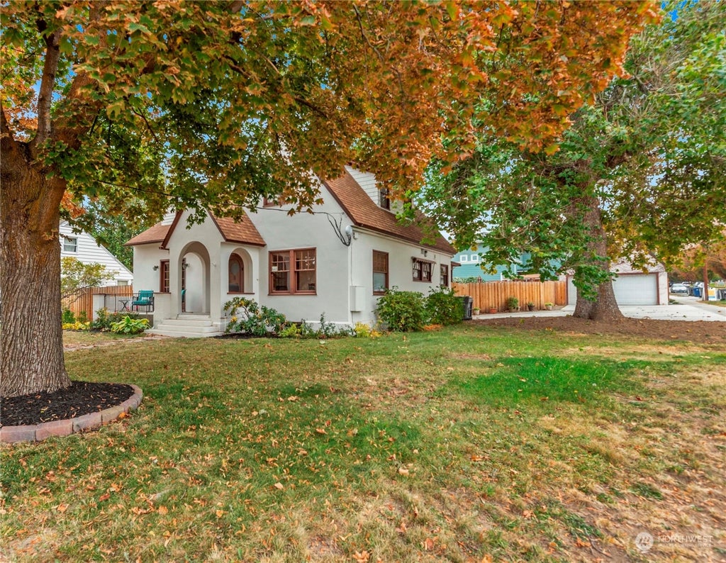 Exquisite Tudor exudes old world charm with modern amenities. Situated on a fully fenced private 1/3 acre lot with a two car detached garage. 4 bedroom, 3 baths, Sunroom & office/breakfast nook. Living room and dining room with built-ins, crown molding, 9 foot ceilings, gas fireplace and stunning hardwood floors. Bright kitchen with stainless steel appliances and center island. Updated electric, central A/C and tons of storage throughout. Great location close to shopping, hospital and all schools. New exterior paint and new fence, mature grapes and great street appeal.