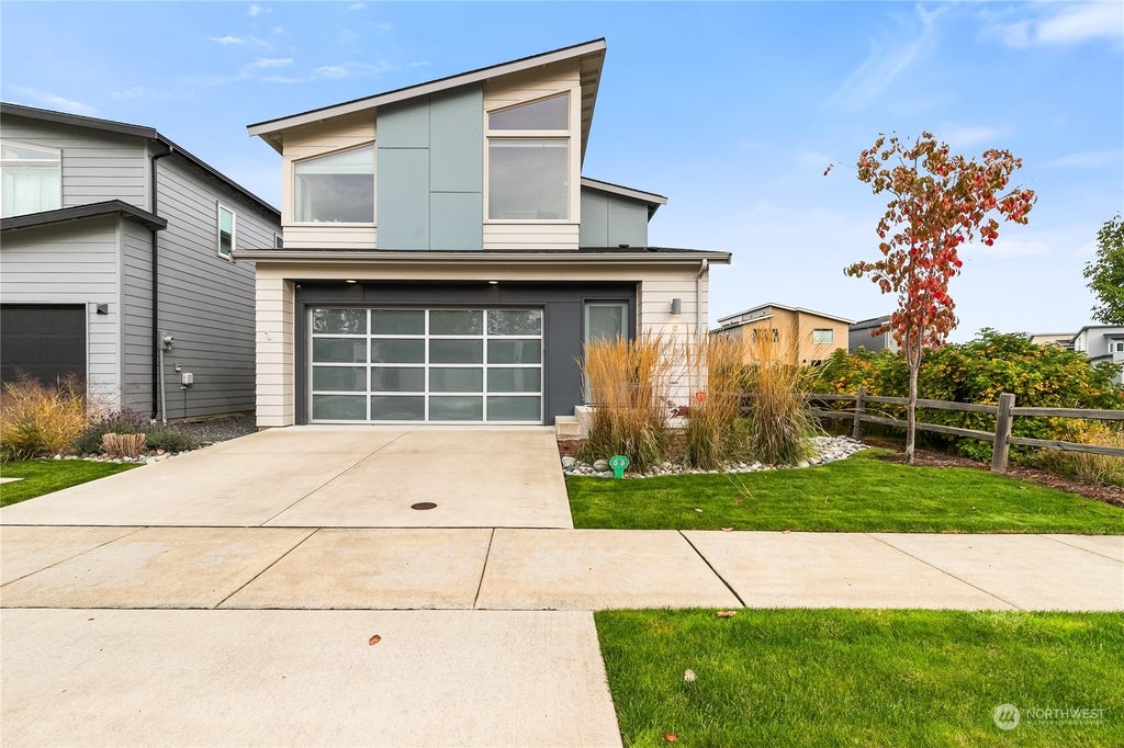 This stunning 2020 modern contemporary home is in near-perfect condition, offering 3 bedrooms, 2.25 baths, and a south-facing orientation that fills the space with natural light. Featuring an open floor plan, gas fireplace, and quartz finishes throughout, this home also includes all appliances and window treatments. The mini-split AC and heating system, heated garage with upgraded glass panel garage door, and 8-panel solar system add energy efficiency and lower utility bills. Located on a cul-de-sac with a green belt on two sides gives the home nice privacy, it's in the desirable Cordata area, near South Bellingham Golf Course and shopping.