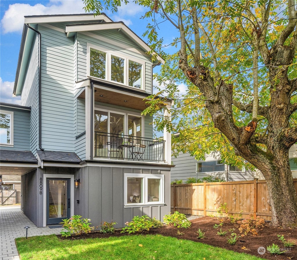 Discover this beautiful new construction home by local luxury home builder Moderna Homes. Featuring hardwood floors and designer finishes throughout, the loft-style main level includes a fireplace, deck, & chic kitchen with stainless steel appliances & slab counters. It's quiet and private. The entry level offers a bedroom, full bath, and an office perfect for a work-from-home setup or home gym. Enjoy heated storage, ideal for Northwest adventurers. The upper-level luxury primary suite features a spacious 3/4 bath. Additional highlights include fenced yard & alley access to dedicated off-street parking. Conveniently located near I-5, South Lake Union, downtown, public transit, and just blocks from Green Lake and its vibrant shops and cafés.