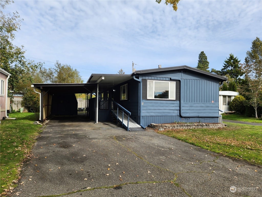 Welcome to South End Mobile Estates, a vibrant 55+ Community nestled in the heart of Happy Valley. Conveniently located near Fairhaven's wide array of restaurants, shopping, and a vast network of trails. Step inside to discover this fully renovated home. Featuring new paint, carpet, and vinyl plank floors, that flow seamlessly throughout the home. This thoughtfully designed 3-bedroom home features updated bathrooms and kitchen ready for you to move right in. The large primary bedroom has an attached 3/4 bathroom and spacious walk in closet. The lot includes a backyard garden space, a shed providing additional storage, and a covered patio. This home offers a perfect blend of comfort, convenience, and affordability.