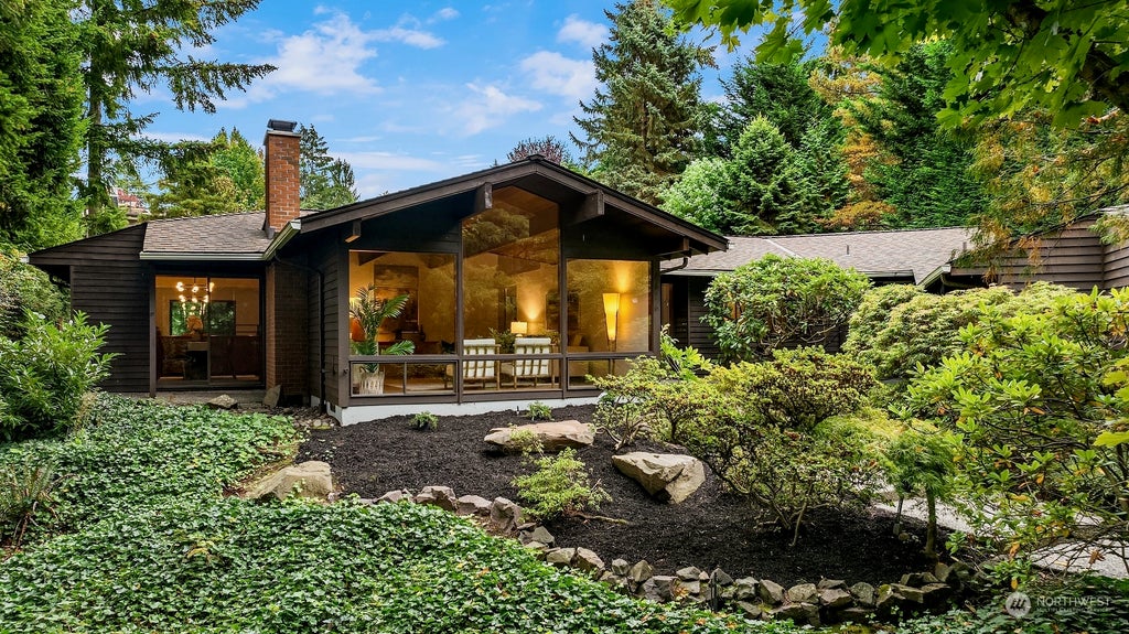 Welcome to this beautifully maintained rambler nestled on a sprawling 19,898 square foot lot in sought-after Clyde Hill. This entertainer’s dream boasts an open and inviting floor plan, with a seamless flow between indoor and outdoor living. The heart of the home is ideal for gatherings, with a spacious living area that opens to the expansive backyard oasis. Surrounded by mature trees and lush plantings that create a tranquil setting, it's the perfect spot for hosting year-round parties or just sit back and enjoy the peace and quiet. Other features include bonus room, heated swimming pool, 2-car garage, impressive drive-through driveway, easy commuting options and more. Truly a timeless Northwest Contemporary classic, you will love it here.