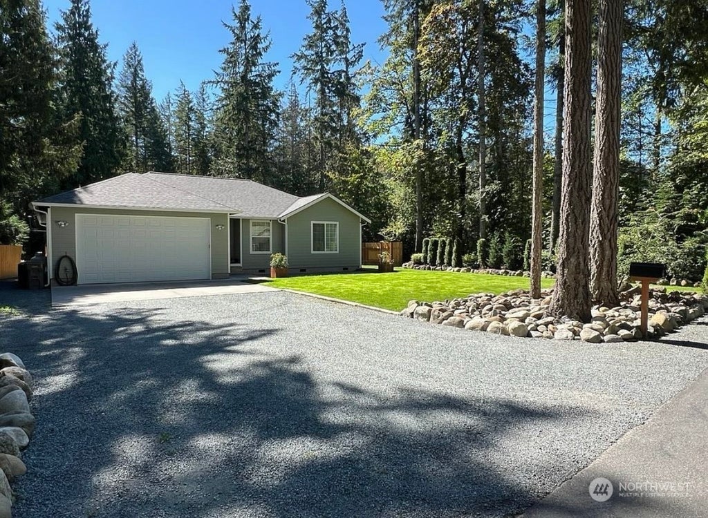 This 3-bedroom, 2-bath Rambler in Wilderness Village boasts an extra large primary bedroom with his & her closets, a double sink vanity, corner jetted tub, and walk-in shower. Enjoy high efficiency with propane furnace & heat pump for AC, plus a tankless on-demand water heater. The kitchen features white cabinets with gray countertops, a gas range, 9ft ceilings throughout, and a vaulted living room LVT flooring, extra wide 24ft garage w/ extra tall 9ft 6in doors Propane Fireplace, Step outside to find covered front & rear porches, a huge backyard patio, Shed & Beautifully landscaped yard is complemented by a bonus Backyard Studio with power and a wood stove, perfect for a guest space, office, or hangout spot.