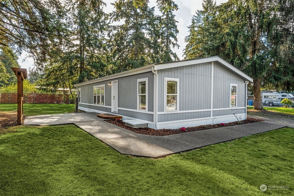 This Light and bright home in the Fir Meadows community is a must-see! Nestled on a fenced lot, on just shy of .2 acres, it has been beautifully remodeled! You'll find all-new roofing, fascia boards, gutters, & downspouts, along W/fresh interior/exterior paint & new flooring! Open kitchen W/appliances that stay! A spacious family/great room W/vaulted ceilings that flow seamlessly into the dining space boasting chandelier lighting- creating an inviting atmosphere. Primary suite ft. full bath W/storage, + 2 addtl. guest rooms & 1 full guest bath! Both baths updated W/new sinks, faucets, & new bathtub in the guest bath. Addtl. features include a detached outbuildings for extra storage, & huge yard W/deck—ideal for relaxing or entertaining.