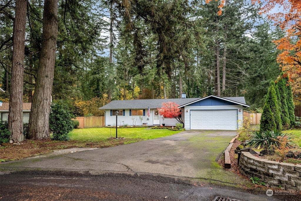 One level living! 3-bedroom, 1.5-bath rambler is situated on a peaceful cul-de-sac in a sought-after community. Enjoy exclusive access to Spanaway Lake, complete with a boat launch within walking distance. The home features three spacious bedrooms, including a half bath off the master, an eat-in kitchen, and a large family room with sliders leading to the park like backyard. The oversized 2-car garage provides ample storage, with additional parking available in the cul-de-sac. Brand new carpet and interior paint throughout; making it move in ready. Newer roof and furnace. Conveniently located near military bases, shopping, freeways, a recreation center, parks, and trails. Call for your private showing.