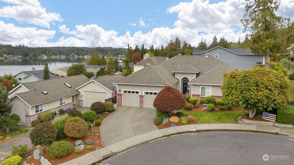 *Pristine Open Concept Rambler* w/partial views of Kitsap Lake in one of Bremerton's most desirable neighborhoods-Dockside! Lovely foyer leads to a beautiful great room w/cozy FP, chef's kitchen with every last detail accounted for including a walk in pantry for all the extra essentials. Featuring not one but *TWO Primary Bedroom Suites w/ensuite baths & walk-in closets* + office that could convert to a 3rd. bedroom. Pride of ownership shows, 1 owner custom built home. High end finishes everywhere incl. gleaming hardwoods & plush carpets. You will love this spacious home! Doorways are 36" wide, hallways are 48". Covered patio. 2 car garage w/tons of storage & 1K lb.chainfall for heavy projects. Don't miss the waterfront neighborhood park!
