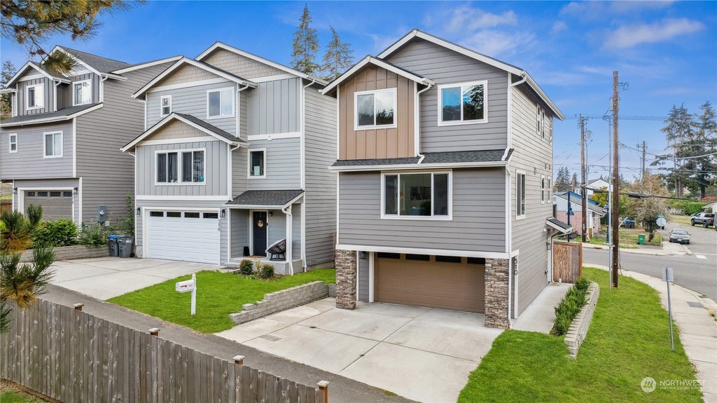 Looking for a newer home without an HOA? Here it is: A gem in today's market! Nestled outside the sought-after Manette neighborhood, you can walk to Lion’s Park and zip down to PSNS & the ferry in less than 10 minutes. Plentiful light floods the modern, elegant interior, which features beautiful quartz kitchen counters, soft natural-wood-grain LVP flooring throughout the great room, & brand-new carpet in the bedrooms. Enjoy peekaboo views of the Olympics & Dyes Inlet from the living room and primary bedroom. Relax & entertain on your balcony off the main level, or play & garden in your easy-care fenced yard. Expansive 2-car garage has bonus storage space. Washer/dryer included in sale. Don’t miss this unique opportunity - come see it today!