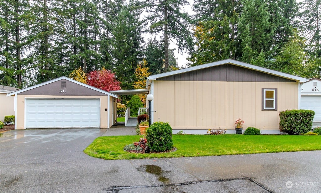 Welcome to the 55+ Community of Fox Chase & this 3 bedroom, 1.75 bath home w/ a two car garage, wheelchair ramp & spacious back yard & full length deck. Enjoy AC in the summer & a spacious 1620 sq ft home featuring a living room, dining room & spacious family room. Open kitchen w/ breakfast bar & all appliances stay! Plenty of yard for gardening with gorgeous, mature landscaping. Two car garage with ample storage & garden shed. Skylights offer lots of natural light. Front porch with wheelchair ramp for easy entry. Primary bedroom and spacious walk in closet. Primary bath has walk in shower for ease of entry. This quiet little neighborhood is tucked back off B St. & offers a great location for accessing Hwy 512, restaurants, stores & more.