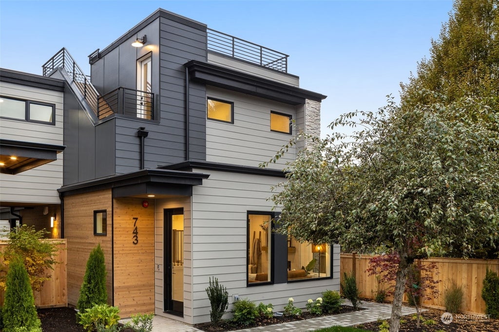 Experience modern living with this stunning 2-beds, 2.25-baths home by Prestigious Builds, nestled in Kirkland’s sought-after West of Market neighborhood. This thoughtfully designed home offers a seamless blend of elegance and functionality, featuring a guest suite + full bath, powder room on the main level, & a luxurious primary suite with an attached 3/4 bath upstairs. The gourmet kitchen boasts custom cabinetry, premium appliances, & a chic tile backsplash—perfect for culinary enthusiasts. Unwind on the spacious rooftop deck with panoramic views of the lake and city skyline. Enjoy the convenience of a designated parking space. Close to beaches, dining, & marina. Located within Lake WA Schools. Offering a 1% preferred lender buyer credit.