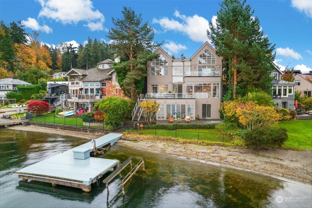 Magnificent 53’ of no-bank beachfront on Arrowhead Pt. One of the best locations on all of Lk WA on a cul-de-sac at the end of a lane, 3,820SF 4BR, 3.5BA 1995 home w/stunning views of Lk WA & the Olympics. Light-filled great rm w/cathedral ceilings & wall of floor to ceiling windows. Large primary w/pvt deck, 2 walk-ins & 5-piece BA. Lower-level family rm, summer kitchen, xtra BR & versatile spaces. Waterfront oasis w/huge deck & patio, level lawn perfect for sunsets, non-stop maritime performances & endless BBQ’s! 42’ dock w/10’+ depths, boat & jet ski lifts in the lee of Arrowhead Pt for most protected moorage on Lk WA! Steps to St. Edwards St Pk, Inglewood Golf, & equidistant commutes to both Bellevue & Seattle. Great bones & potential!