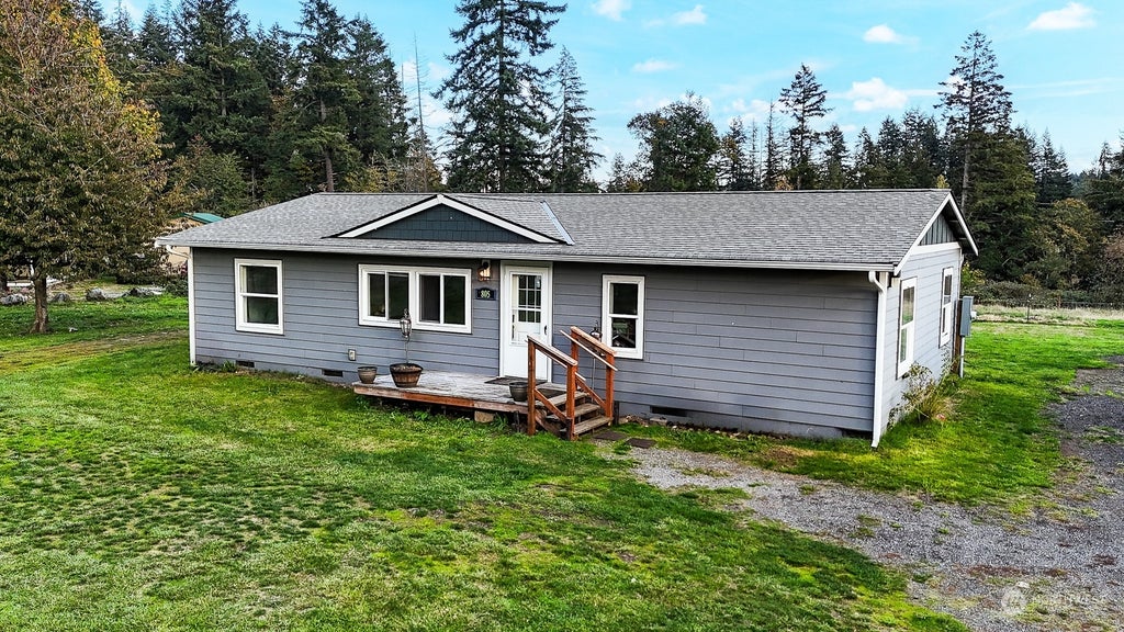 Want to start a garden? Need a little space? This home has it!! This three bedroom + den, 2 bathroom home sits on over and acre of terraced and useable land!! Inside there are vaulted ceilings in the living room, eating bar in the kitchen, an extra room for office or den and a cozy feel everywhere from the forced air heating with heat pump. Outside enjoy the spacious feel of being on your own land from the back deck, two covered parking spots in carport and dry storage building for yard gear. Neighborhood park is just down the road. Come take a look!