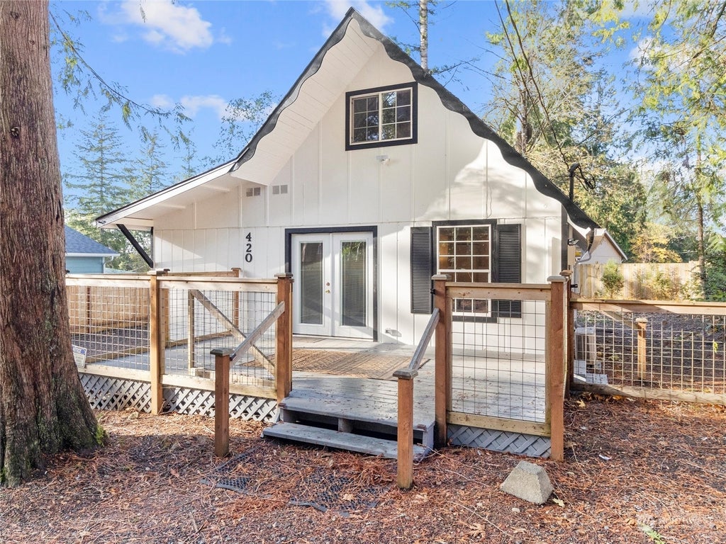 The cabin you've been waiting for! This home has a brand-new kitchen, all new appliances, a new roof over the addition, and new gutter screens. The lot features low-maintenance landscaping, gorgeous trees, room for your RV, and is fully encompassed by a new privacy fence, with an additional fence dividing the backyard. The fenced-in deck in the front is a lovely space to relax and enjoy the forest vibes, with gates leading to front and back yards. Don't miss this opportunity to own a great spot in Shorecrest Beach Community. This all-ages neighborhood is excellent for year-round living or a vacation home; amenities include a heated pool, clubhouse, community garden, sports fields/courts, waterfront park, boat launch, activities, and more!