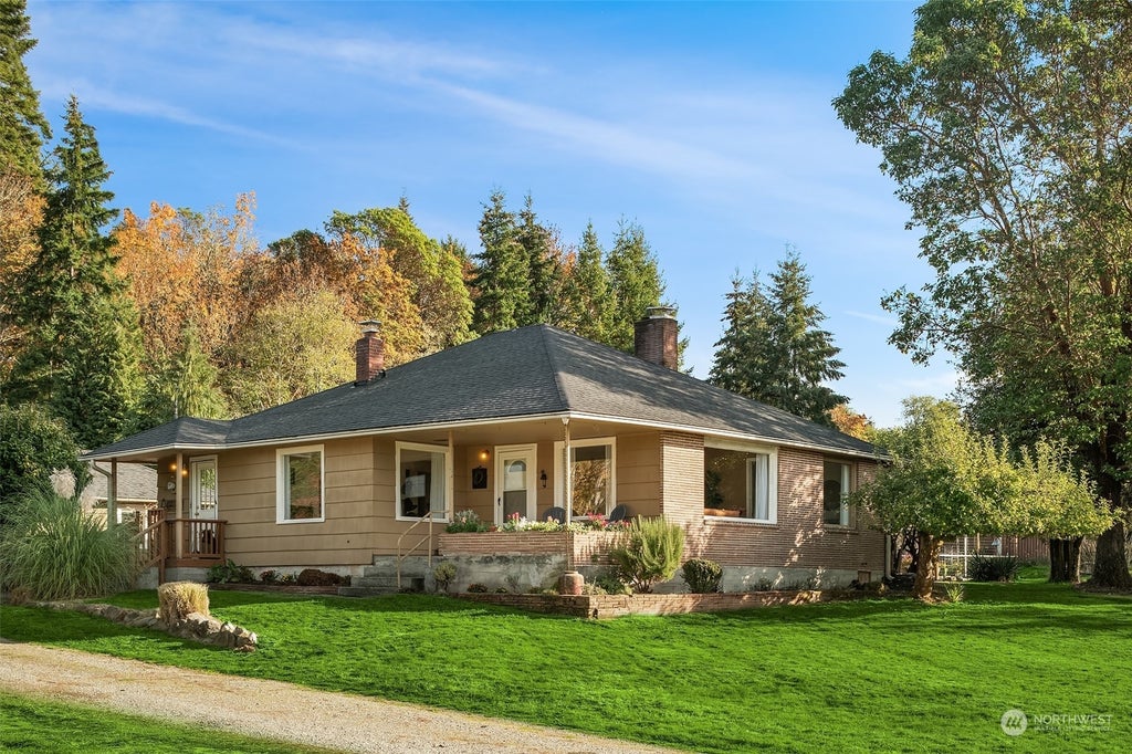 This charming mid-century rambler is located on "The Burton Loop", one of Vashon's most desirable neighborhoods. It features a smart layout with an open kitchen, a separate dining room, and a large great room with big windows to let in the Western light and sunsets. 4 good-sized bedrooms offer plenty of space. The primary has a large walk-in closet with an en suite 3/4 bath. The stunning level lot borders Burton Acres Park with miles of forested trails and access to Jensen Park Beach with a boat launch. A heritage orchard produces apples, plums, pears and cherries and two fenced garden areas have great light and tons of space for gardening. Important features and updates include a new roof, hard-wired generator and detached one-car garage