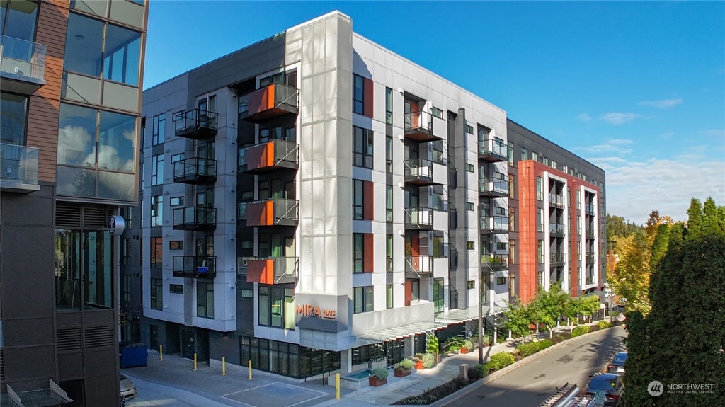 Welcome to this stunning residence at Mira Flats in the heart of downtown Bellevue! The open one-bedroom floor plan features a modern kitchen with ample cabinetry and counter space, plus a convenient in-unit, full-sized washer and dryer. Enjoy exceptional amenities: a gorgeous rooftop deck with a firepit and BBQ for summer gatherings, plus breathtaking city views and fireworks. The luxurious lounge is ideal for indoor events, complemented by concierge service, a serene courtyard, spacious meeting rooms, free bike storage, and a pet-friendly lawn with a dog wash station. Secure gated parking included. With no rental cap and a strong HOA boasting over 90% reserves, this is an unbeatable opportunity!