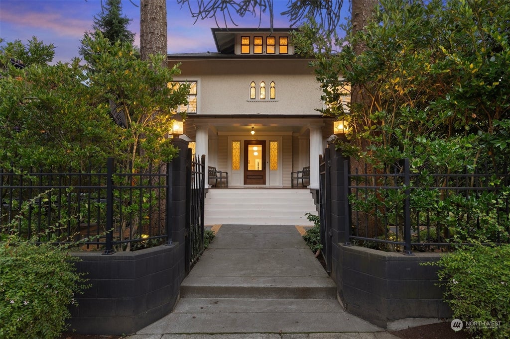 Classic Foursquare prominently sited on a large SW facing corner lot promises ample natural light. Original features combine with modern sensibility, entire home has been extensively remodeled. Well appointed kitchen opens to the private backyard, complete with house audio system, hot tub, multiple decks, lawn area & sports court. A delightful space to entertain, play & relax. Great room on lower level with second kitchen & craft room. Two primary suites, one situated up top with a fireplace, AC, luxury bath & custom closet for your collections. Apartment above the two car garage. If you cherish leaded glass windows but appreciate the luxury of heated bathroom tile & laundry on multiple levels, this Grand Dame near Volunteer Park has it all