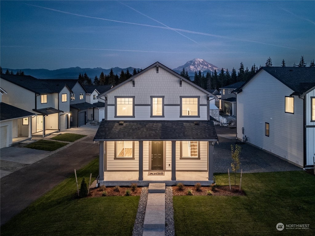 Completed Home - Move-In Ready! The Ashford floor plan greets you with a very inviting large front porch & welcomes you into a open entry & beautiful vaulted great room. Spend time chatting around the kitchen peninsula bar or enjoy an intimate dinner in the dining room. Very well thought out 3 bedroom plus Bonus/Loft plan allows you to enjoy life with ease to invite guests over to utilize the covered outdoor back patio or enjoy quiet time in your primary bedroom suite with vaulted ceilings. Over $43,000 of upgraded options included. If you are working with a licensed broker, please register your broker on your first visit to the community per our site registration policy. View of Mt Rainier from Primary Bedroom!