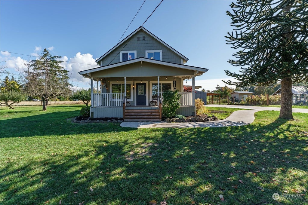 Just the right amount of country! Original 1912 farmhouse with all the charm yet amenities for the simple life. Pick a porch to do your sitting, both front and back offer a place to get cozy. Beautiful, open kitchen with a ton of room for cooking and baking, a separate dining area with room for those feasts, homeschool or game night. The living room is flooded w/ light, gorgeous shiplap walls, a full size bath, storage, and a great sized mud/laundry room. Upstairs offers 3 bedrooms, a landing that could double as office space with the original built ins. Outside is full of growth and perfection- mature landscaping, several fruit trees, a chicken casa, an established garden, a great sized yard & a 27x27 shop- dirt floors with its own power!