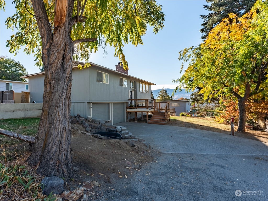 Welcome to your new retreat with stunning mountain views from the large picture windows! This updated three-bedroom split-level home offers plenty of space and comfort. The light and bright kitchen is perfect for entertaining, featuring new LVP flooring, cabinetry, and countertops. There are two brick fireplaces-one on each level. The lower level provides privacy with two distinct areas that can be used for a workout area, an office, or whatever you need! You'll also find multiple outdoor gathering spaces, ideal for BBQs and fire pits. This property includes RV parking, garden areas, spacious patios, and ample parking to meet all your needs. Enjoy!