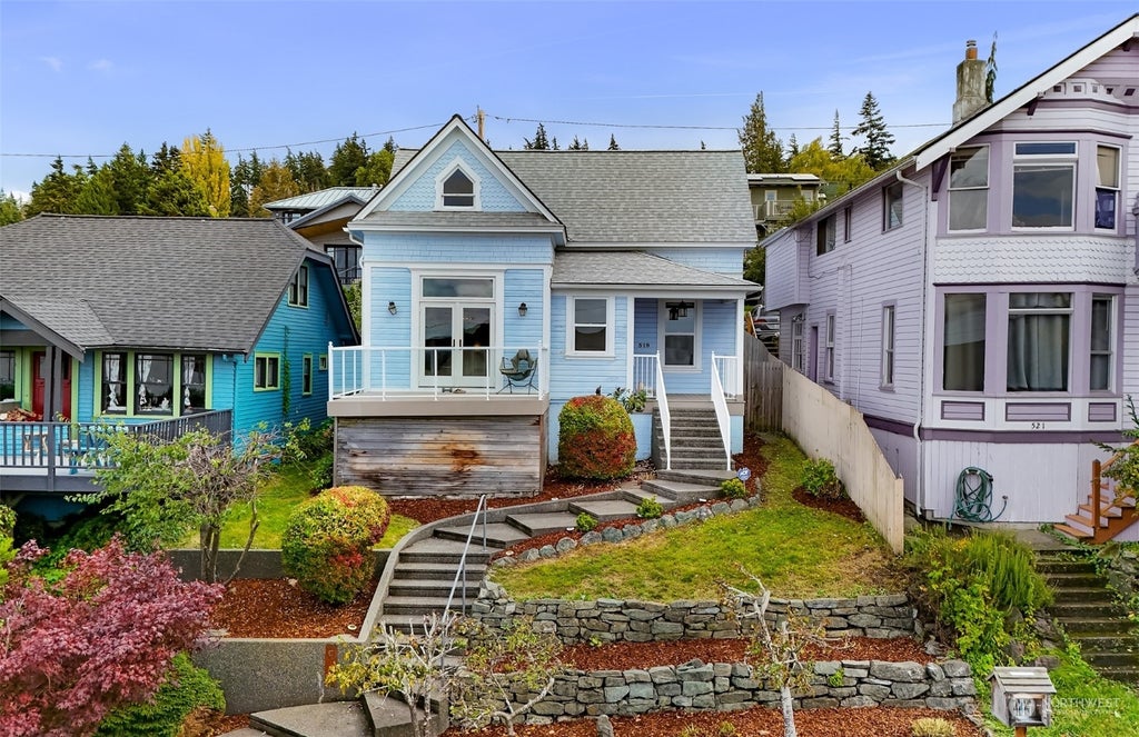 Enjoy stunning views of Bellingham Bay from this charming home located on desirable South Hill. This 1902 Victorian style home is full of character & tasteful updates. The main level features Cherry Hardwood Floors, primary bedroom w/walk in closet, full bathroom, & updated kitchen w/quartz counters, stainless appliances & Wolf Gas Range. Upstairs you will find a unique floor plan w/3 additional bedrooms, all boasting beautifully restored original Fir Floors & a 2nd bathroom. Enjoy the views from your front deck or living room, which features main level Air Conditioning to keep you comfortable on the hot summer days. Only a short walk to Boulevard Park & Fairhaven, this beautiful home seamlessly combines comfortable living with convenience.