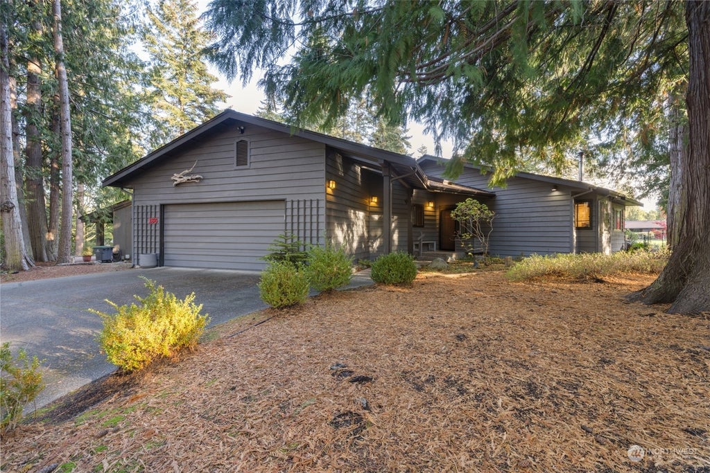 Stylish home of natural materials on an oversized lot and a half, right on the 6th Fairway of the Sunland Golf Course. Framed by towering trees this beautiful home is reached by a beautiful covered walkway with gorgeous PNW landscaping with no mowing to do. The home features a cozy living room with vaulted, tongue and groove cedar ceilings, wood wrapped windows and handsome wood stove. Fantastic deck facing the golf course with strategic plantings for privacy. Easy to maneuver kitchen w/Corian counters and custom cabinets. Beautiful master suite tucked in the corner of the home with access to a dedicated private deck. Pedestal sinks in both bathrooms and nice den/office. Multiple sky lights and a "Costco Room" in the 2 car garage.