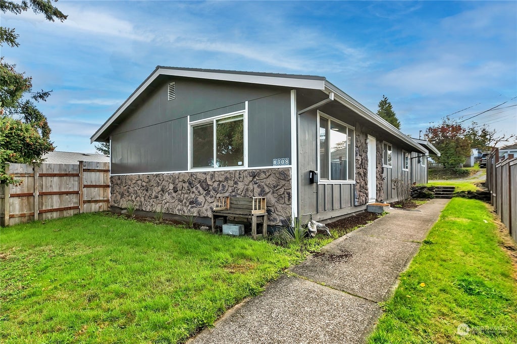 Rambler Style Home w/nearly 1650 square feet. This home has experienced some conversion projects: Some newer vinyl windows, new engineered hardwood floors, new fixtures, fresh paint and remodeled bathrooms. 4 bedrooms and 2 baths with a 2nd kitchenette. The kitchen has new cabinets, new granite countertops, large pantry and stainless steel appliances. Large living room with gas fireplace. Alley Access and parking pad with its separate entrance. Washer dryer included. New fencing in back yard with tool shed. Close to 6th Avenue Shops and Restaurants in Tacoma.
