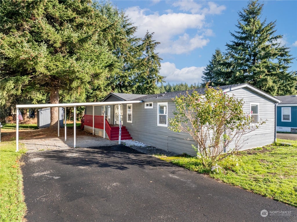 Discover this beautifully refreshed 1,848 sq. ft. home in Tenino Estates, blending modern comfort with functionality. The open-concept layout creates an inviting space for entertaining, while the primary suite offers a private retreat with a luxurious bathroom and large walk-in closet. Two additional bedrooms and a full bath are situated on the opposite side, ensuring ample space and privacy. Recent upgrades include new paint, cabinets, flooring, windows, and a brand-new roof, adding durability and style. Outside, you’ll find two covered parking spaces, an extended driveway, a storage shed, and a spacious backyard. Space rent is $795 per month.