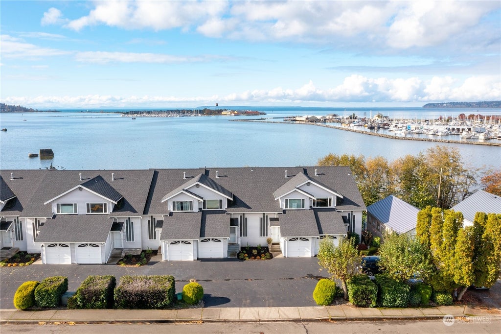 Spectacular waterfront views from every floor. Enjoy year round sunsets of Drayton Bay, Marina, Semiahmoo & White Rock BC, with regular Bald Eagle sightings. Approx. 1600 sq. ft. freshly painted. Main floor features: open kitchen, living & dining areas with a covered balcony, plus washer & dryer. Top floor’s suite has full bath & balcony. 2nd bedroom features ¾ bath. Lower level includes gas fireplace, patio, living space & bath. One car garage with shelving. HOA just landscaped grounds, sealed driveway & approved upcoming siding. Close to Semiahmoo & Blaine Marina. 25 minutes to Bellingham & only 5 minutes to Canada border. Ideal for full-time living or a second home.