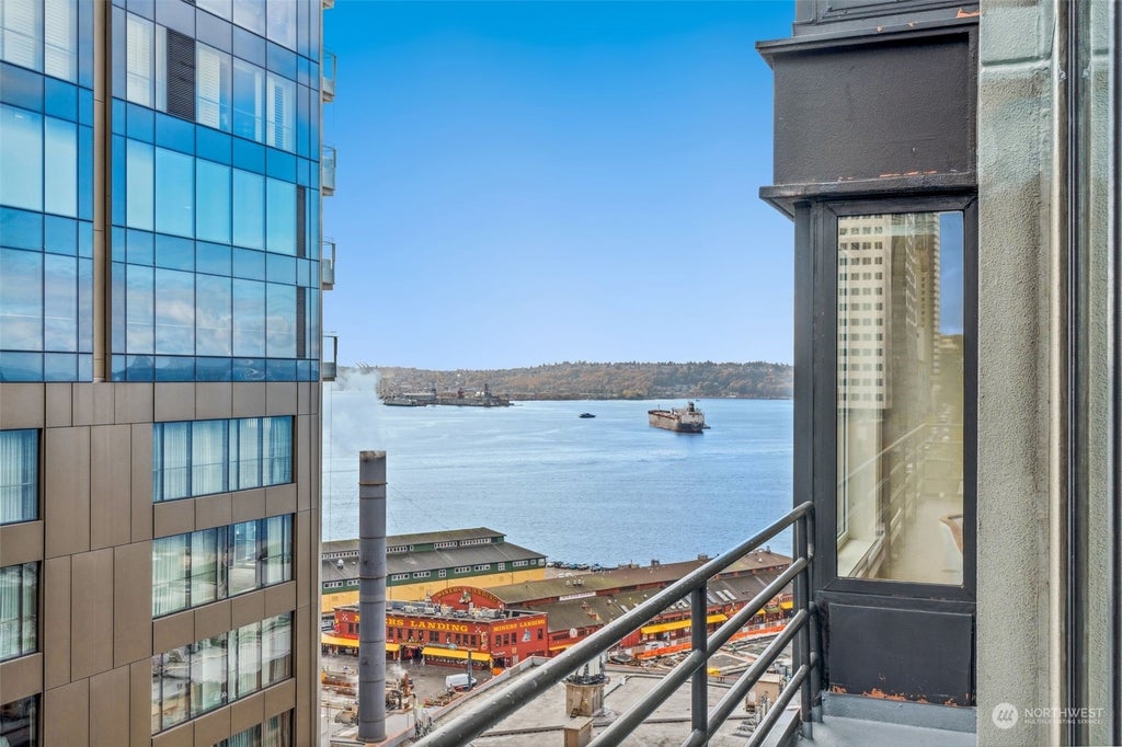 This elegant 2-bedroom, 2-bath home in downtown Seattle offers lovely metropolitan views and sits in the heart of the Emerald City. Spanning over 1,260 sq ft, it features travertine floors in the entry, kitchen, and baths, with hardwood floors throughout the remaining space, heated floors in primary bath. The chef's kitchen boasts gorgeous finishes, and the custom lighting adds a sophisticated touch throughout. Enjoy a wrap-around balcony, a guest bedroom with a Murphy bed, and a built-in office. Conveniently located near the Four Seasons, SAM, Benaroya Hall, and just a short stroll to Pike Place Market. Footsteps to the NEW Seattle Waterfront. Doorman service, parking, and storage. A perfect urban retreat!
