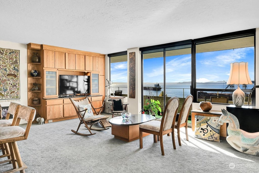 Welcome to Harbor House on Queen Anne! Fantastic Uptown location is convenient to restaurants, shopping, parks, waterfront & transportation! Easy commute to Expedia & Amazon/SLU! Enjoy spectacular views of Puget Sound, Elliott Bay, & Olympic Mountains from every room! Wonderful west facing residence with 2 bedrooms, 1.75 baths is perfect for entertaining & features an updated kitchen, large dining room, extra large living room with A/C & sliding glass doors for deck access. The primary bedroom has an ensuite bath & sliding glass doors with deck access. The 2nd bedroom is also quite spacious with room for a king sized bed! Built-ins throughout plus plenty of storage. Free laundry room on every floor. Garage parking plus extra storage.