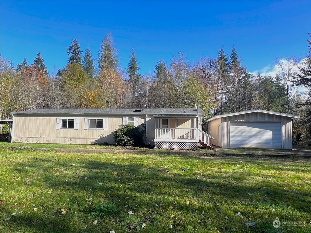 Great opportunity to own 2 homes and 2 garages on a 3 acre parcel. Main home is a 3 bedroom plus a den/office 2 bath doublewide that has just had a brand new roof, all new interior paint and the piping for plumbing has been completely redone along with a new water heater. There is a 2 car garage/shop and a large yard. 2nd home is a 2 bedroom 1 bath singlewide with a shop as well. Both homes have private wells and their own septic systems. Singlewide is currently rented with a month to month tenant. Due to the age of the singlewide and both homes on one parcel, this is a cash only sale with the possibility of an owner contract.