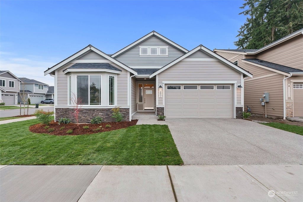 Rob Rice Homes presents the Pine Plan in Skyview Estates on a corner lot. The main level offers the primary suite, two add'l bedrooms, and a full bath, while the upper level boasts a versatile secondary suite with a bedroom, bonus room, and full bath. The kitchen impresses with quartz countertops, a full tile backsplash, "Sable" Maple shaker cabinets, and a gas range with double oven. Highlights include quartz counters throughout and engineered hardwood in the entry, kitchen, and dining. Enjoy the covered patio, privacy fenced yard, and fully landscaped yard. Energy-saving features include solar panels, a heat pump, and an electric hybrid water heater. Prime Tumwater location, close to schools, I-5, and major shopping.