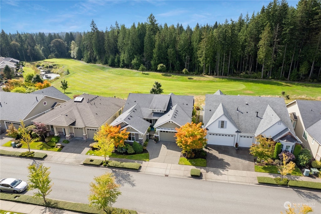 Situated on an elevated lot with commanding views of the 17th Fairway is this highly desirable Hemlock plan home. The vaulted great room opens to a spectacular west facing, spacious private patio perfect for sunset drinks and BBQs. Hardwoods thru the main living areas, upgraded millwork package and doors. Island kitchen w/warm wood cabinets w/pull-outs, double ovens, gas cooktop, and a stunning backsplash. Beautiful dining room built-in. Serene owner’s suite enjoys golf course views, 2 walk-in closets & a beautifully tiled 5 piece bath. Guest suite w/a full bath & private family room. Large office w/French doors. Garage w/tons of storage. Wired for generator & portable gen included. Level stroll to the clubhouse. Pre-inspected. Ages 55+