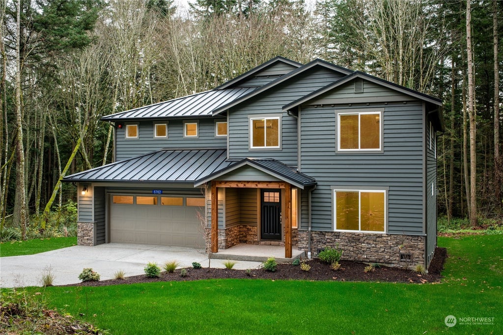 Brand new home on a beautiful forested 8+ acre lot. 2 car garage with shop space. Neighborhood is gated with an unattended guard house for added security and privacy. Trails lead to Whistle Lake. Metal Roof and real cedar siding. The home is completed with white cabinets, LVP floors, slab granite counters, full height backsplash, white painted millwork, wood wrapped windows, double panel white painted doors and stainless steel Kitchenaid appliances. High ceilings in the huge family room, formal dining room, downstairs office and a huge master bedroom make this home extremely functional. Hybrid heat pump water heater, High Efficiency ductless mini splits provide both heating and air conditioning to the entire living space.
