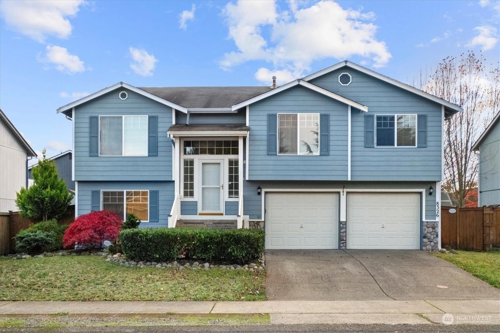 Back on the Market! This well-maintained home features 4 bedrooms & 3 full bathrooms. The upper level has a large living room with fireplace & formal dining room. The gourmet kitchen has stainless steel appliances, oak cabinets, breakfast bar & informal dining space. The large primary bedroom with ensuite bathroom has separate shower & a jetted tub. Two additional bedrooms & a hall bathroom. The lower level features an additional bedroom, a full bathroom, laundry facilities, & a large bonus room suitable for a family room, home office, den w/ a 2nd fireplace. The property also showcases a breathtaking yard with a patio & shed. 2 car attached garage. Close to JBLM, I-5 shopping, schools, restaurants and entertainment.