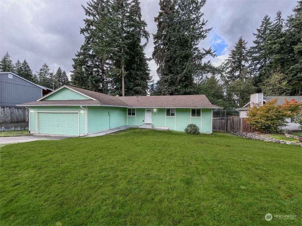 Perfectly tucked away in a quiet neighborhood is this beautiful 1,214 SqFt Rambler. Newly painted exterior, large deck w/brand new weather proof decking, 2 car garage. Side access gate to the backyard allowing RV/boat/add. parking. Fully fenced, .24 acre lot backs up to a green belt adding stunning territorial views and backyard privacy. Inside you will find 4 bedrooms 1.5 bathrooms with LVP and carpet flooring throughout, tastefully updated bathrooms, and a cozy wood burning fireplace. You will quickly forget you are just minutes away from entertainment, shopping, restaurants.