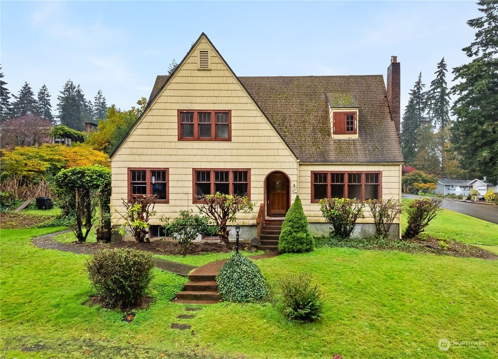 Channeling early 1900s Shelton with this character filled tudor home! All the things you love about an old home- hardwood floors, built ins, real wood millwork and antique bathroom fixutres along with the beauty and character that can't easily be replicated! The home makes a statement, situated high on a double corner lot. Walk into the main living area, with alcove ceilings, and a natural gas fireplace, and windows galore, or step into the dining room, with built ins. There are 4 sizable bedrooms, and closets everywhere. A large basement, with 1 car garage. Of course an old home comes with it's fair share of work, and this one is no different, needing updating in many areas, but what a jewel it will be again once completed!